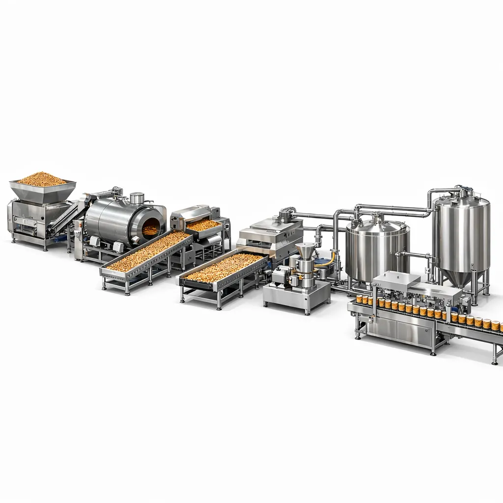 | Line Sections | Cleaning, Roasting, Cooling, Blanching, Grinding, Mixing, Filling, Labelling |
